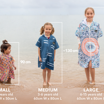Save 0% R 1,266.00 Rosy Tides - Kids Hooded Towel Recycled Sand Free 1 × Hooded Towel Sand Free Size Small (Recommended Age 1-3) Dimensions: 45cm Wide × 50cm Length Weight: 340grams Storage bag: Dimensions: 25cm ×... View full details